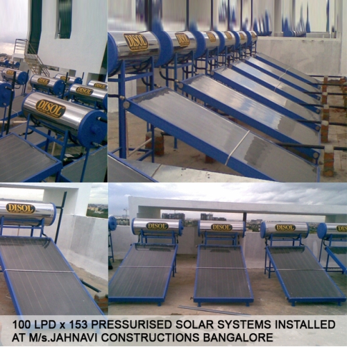 Disol Solar Systems Pvt. Ltd., is one of the leading manufacturers of FPC & ETC Solar Water Heating Systems in Karnataka in the brand name of 'DISOL'. Since 1996 we have a experienced dedicated Technical Team to design the equipments by Quality, Reliability and Hi-efficiency suitable to the customer's requirements. Our products are approved by Ministry of New and Renewable Energy (MNRE) and Indian Renewable Energy Development Agency (IREDA), Government of India. Our company has ISO 9001-2008 Certification. Our products are manufacturing as per customers requirements.